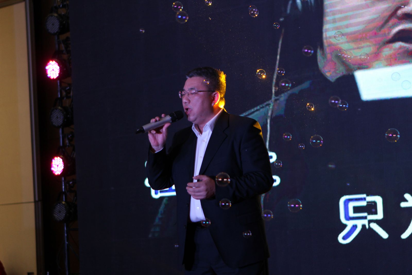2、 董事长致辞:每年年会董事长的唱歌曲目都是保留节目。今年的一曲《在路上》,道出了这一年董事长带领大家激昂前行的艰辛与坚定意志。