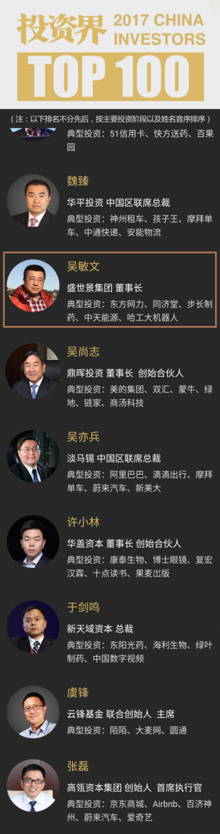 0638太阳集团官网捷报 | 0638太阳集团官网董事长吴敏文获评“2017投资界TOP100顶级投资人”