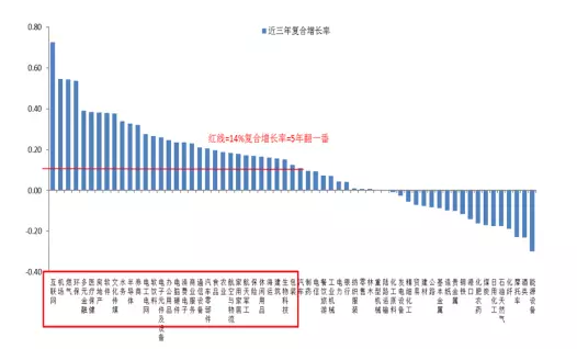 A股市场最大的缺陷在于很多代表新动能的大量资产并没有这个市场有效地沉淀下来,比如说以阿里、腾讯为代表的互联网经济、数字经济等独角兽还有代表先进制造业的华为、小米都孤悬海外或者没有上市,因此是个有偏的市场。但即便如此,最近我们做了个研究发现,中观和微观层面的分化非常地明显,我们选取了A股的64个细分子行业,通过对比过去三年(2014-2016年)上市公司的资本开支复合增长率情况,能清晰地观察到新旧经济的增长分化现象。一方面,传统产业的资本开支复合增长率都表现为负增长。虽然供给侧(供改环保限产-价格上涨-利润回升)给上游的资源性行业和有垄断优势的国企带来了蛋糕再分配的红利,但价格上涨又会抑制中下游的实际需求和利润,最终带来名义周期的均值回归,增加了经济数据的反身性和波动性。另一方面,A股有一半行业的资本开支的复合增长率超过14%。按照简单的“70规则”,这些行业规模最多5年就可以翻一番,这些行业大多数是新经济或传统产业的集中度显著提升。有1/6的行业资本开支增速超过35%,意味着最多2年就可以翻一番。如果进一步考虑到以阿里、腾讯等为代表的在海外上市的庞大的互联网公司以及华为等未上市的高科技公司,则这种分化效应会表现得更加明显。