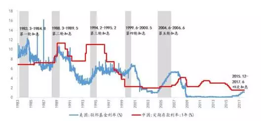 三是美国加息预期的牵引始终存在。10月份G2的财经一号领导实际上都换了人。是不是中美双“鹰”。搞不清。但中国肯定是头“鹰”。权威人士讲,货币政策和金融监管要“长牙齿”。我们要注意鲍威尔对美国经济的判断,他认为美国经济已经在上升通道中,尽管由于技术的革命、供给侧结构、生产函数的变化使得目前的上升通道比历史经验中每一次要平缓很多。但这和萨默斯的判断相左,萨默斯认为美国现在面临的是“长期停滞的陷阱”,转化为政策对应的是反对结束低利率状态。而鲍威尔会延续目前货币政策正常化节奏,鲍威尔表示美国这一轮加息至少要持续至2019年中期,联邦基准利率将接近3%。当然考虑美国经济增长力度并不强,随着货币政策正常化的不断推进,美国有可能迎来历史上更长时间的利率平坦化曲线。长端利率踟蹰不前,随着短端利率不断抬升,19年中期,达到3.5%的位置比较正常的感觉。目前中美十年期国债利差为150个bp,我们假设中国央行比较积极地进行流动性管理,压长端,两国利差缩小到50个bp,4%咫尺之遥。尽管中国利率已经高度市场化了,传统意义上那个基准还在,居民1年期定期存款利率为1.5%,扣掉利息税,如果年底美国再加一次,联邦基准利率到1.5%,美国的基准利率将在中国之上,因此市场上总有央行跟随加息的预期不奇怪。